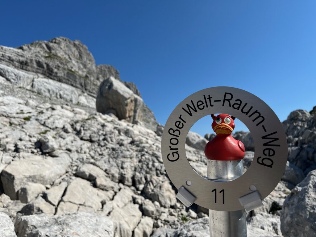 Entlang des Weges wird die Landschaft dank des Projekts „Großer Welt-Raum-Weg“ zudem zu einem künstlerischen Erahrungsraum: An bestimmten Punkten hören wir über Kopfhörer Audiotracks Stimmen von Alpinist:innen, Wissenschafter:innen, Künstler:innen… Diese Audioimpulse regen zur Reflexion über die Verbundenheit von Mensch, Natur und Kosmos an und machen die Durchquerung des Toten Gebirges zu einem ganz besonderen Erlebnis.